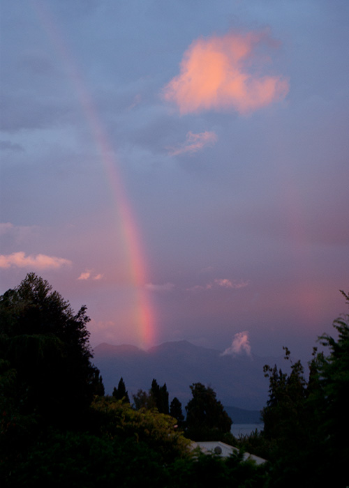 I saw this early-morning rainbow when I looked out the window of our rented holiday home in Wanaka. Wish I'd been down at the lake at the time!