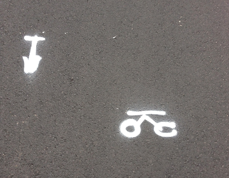 A road near my house has just been resurfaced. Someone sprayed some basic marks to show where the "proper" road markings go.
