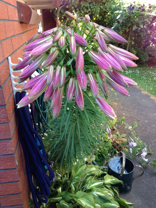 Our Xmas lily is going bonkers this year. I counted 63 buds on the single stem. We can't wait to see it blooming.