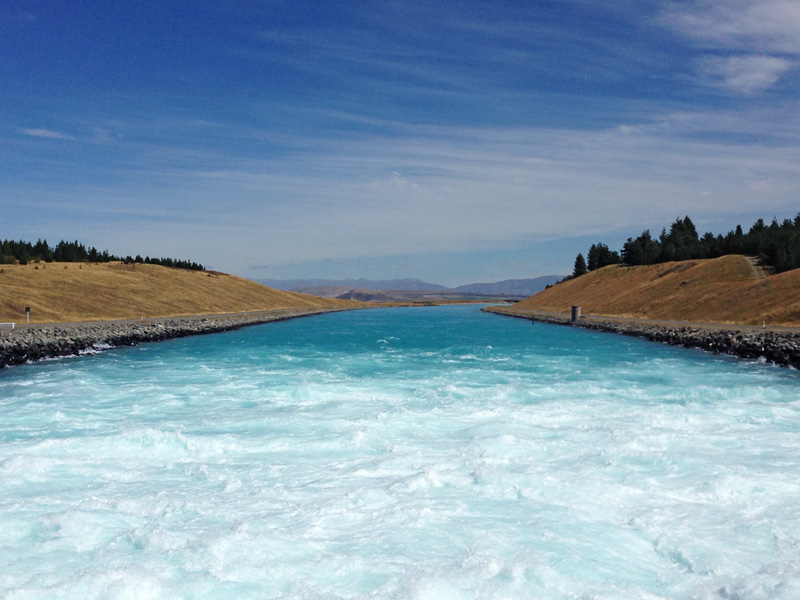 This is the outlet from the power station at Lake Pukaki, which feeds water along the canal to Lake Ruataniwha.