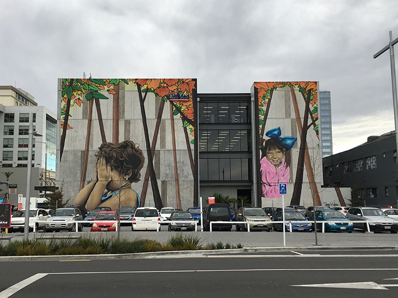 As part of the CBD rebuild there are some large-scale pieces of street art covering the sides of some buildings.