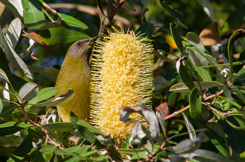 A bellbird visiting our garden on a chilly winter morning.