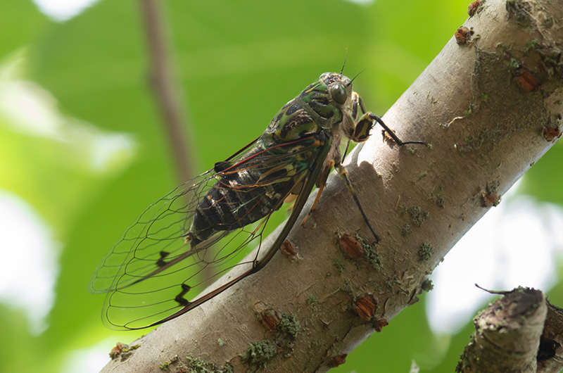 It's cicada season here at the moment. The noise in some places is deafening. My daughter has been enjoying collecting the skins she finds in our back yard each day. This fellow started chirping just over my head while I was taking another photo.