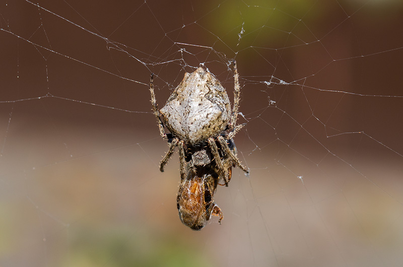 A spider dining on a bee.