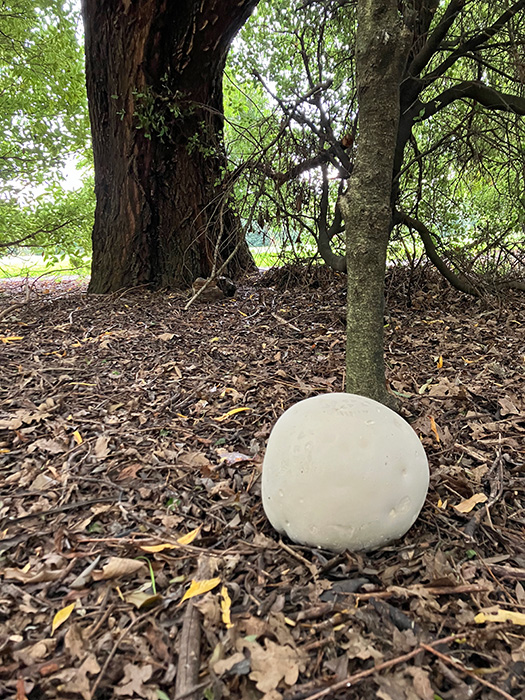 While in a park today I noticed the biggest puffball I've ever seen among some trees. It was about 10 inches in diameter.