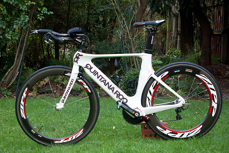 My triathlon bike, now with carbon race wheels.