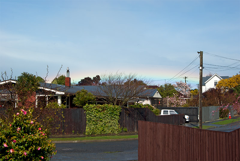 When the sun came out I noticed it was still raining so I looked out the window and saw this very low rainbow.