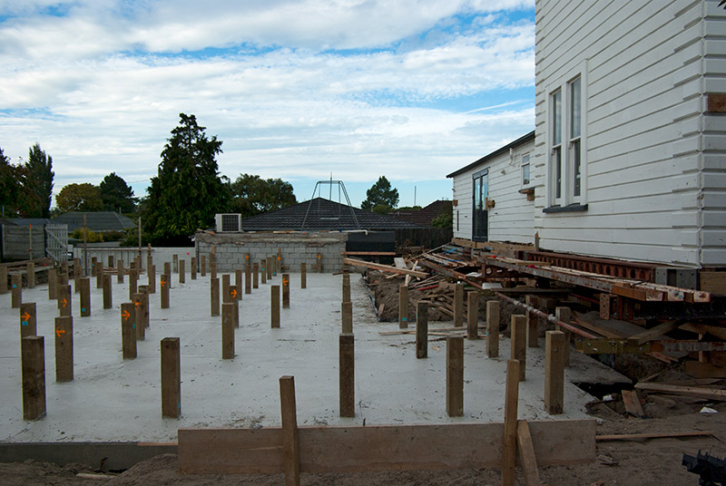 A followup to my earlier "House on Wheels" shot. The new foundation has been put in place and looks almost ready for the house to be moved back.