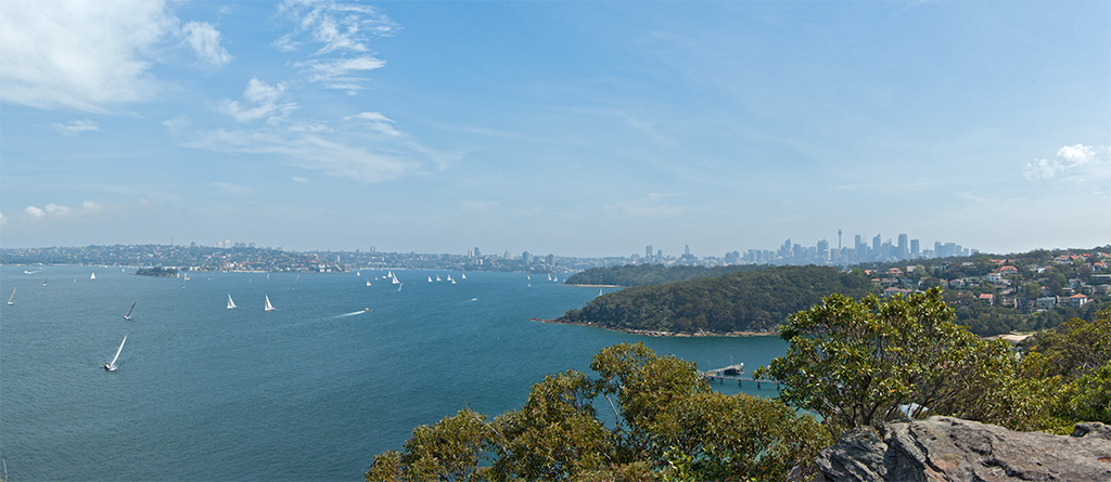 A panoramic view from Georges Head towards the Sydney CBD.