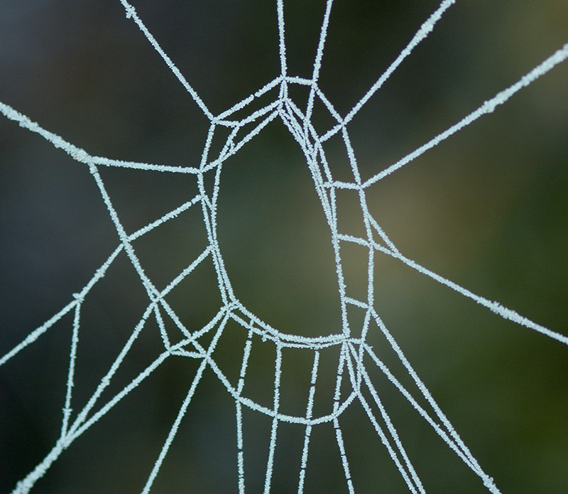 We had a -5°C frost this morning. We found a couple of half-completed spider webs in the garden. It looks like the spiders weren't too happy about spinning webs in the cold.